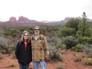 Snow . . . rain . . . breakfast at The Coffee Pot. Umm, buckwheat pancakes! We forgot to pack my jeans, so we bought some at a nearby thrift store. The red rock mountains with snow dusting are gorgeous – Sedona looks like downtown Shangri-La.