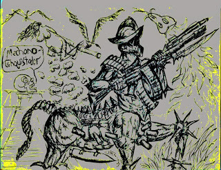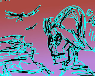 Once again, considering the gonzo-disjointed way I wrote it, I'm amazed how it holds together. I guess all those years of writing stories built a diabolical story-machine in my brain: All I have to do is throw a bunch of random weirdness in there, shake well, and KERBLAMO! It's become a way of life with me. And because day jobs have taken up more or my life since then, I've become accustomed to being interrupted, and finding my way back on track.