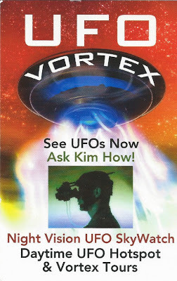 As we checked out of the motel, a balloon hovered in the sky, and I picked up a brochure for UFO Vortex . They give tours of “a UFO hotspot.” “We provide the most powerful Military Night Vision Gear which amplifies the light 70K more than the naked eye sees” and “We ALWAYS see UFOs!”