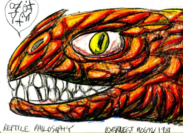 "Like I always said," Obie went on, "it's televoodooizing time here in the final act of the 20th century. People all over the world are force-feeding lizards with protein-rich reptile chow spiked with stuff like pituitary gland of pit bulls in an attempt to get the critters to reach their as yet unrealized maximum capacity. I've been investigating it, and it's getting heavy. I got some video off a satellite feed from Indonesia of these Komodo dragons that looked like Godzilla."