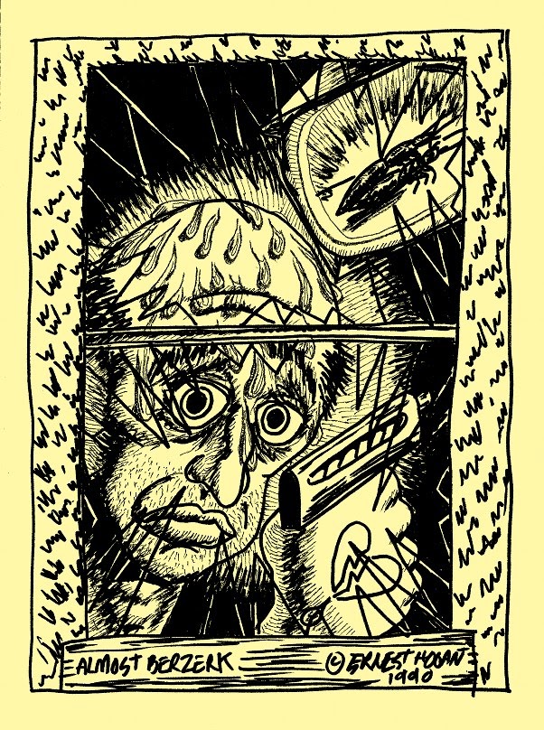 "Honest guys," I said, feeling my face, there was stubble, and some swelling, "you'd think you'd never seen a banged-up face before." Then I felt some scarring. "Uh-oh!"