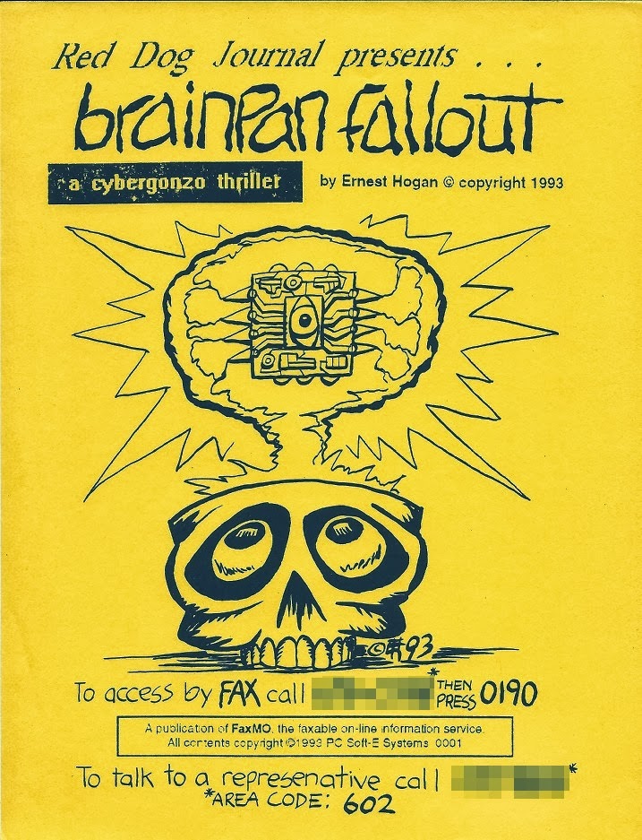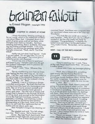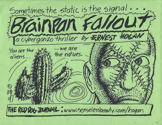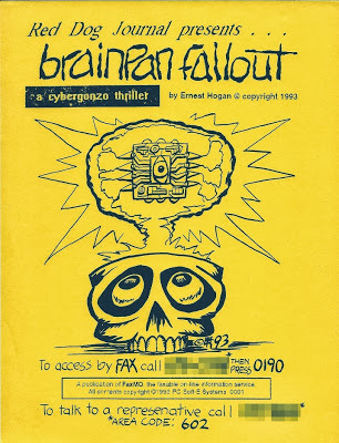 Luckily, in a few hours it was back, and I found new links that can get you to the original Red Dog Journalversion of Brainpan Fallout, complete with all the original typos and mistakes, and the fun, between-the-chapters self-promotional stuff. Get glimpses of my personal life! Find out about the neobohemian scene in Phoenix back in the Nineties!