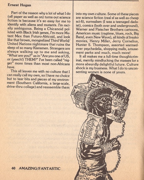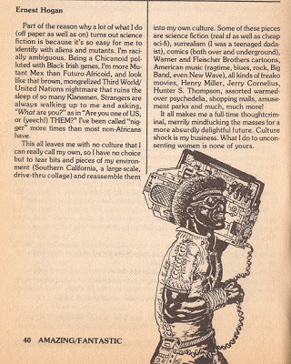 But it seems that a lot of folks believed that science fiction was properly by and about Western Civilization and white people. I was frustrated with science fiction magazines that aimed at a white, middle class audience. After, this was a genre for educated people with an interest in science . . .