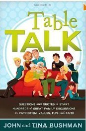 Table Talk byJohn and Tina Bushman How do you change the world? It’s a question raised in the introductory pages of Table Talk, a new release by John and Tina Bushman, and the suggested answer is one we all can guess—begin with yourself, and you will affect your family, who in turn will eventually impact the world.It sounds simple enough in theory, but even the closest and the most vigilant of families can eventually reach a point of conversational impasse, where over scheduled lives and generational differences of opinion slow the flow of sharing to a trickle, and reduce the depth of topics covered to brief exchanges about the necessities of life.Enter the Bushman’s book of thoughtful conversation starters, touching on some of the most important topics of our day—patriotism, values, faith, and fun. From individual self-reflection to breaking the ice at a large family fireside, Table Talk facilitates thought, and opens lines of communication through a non-threatening format that feels like a game.The Bushmans drew upon John’s fifteen years of experience as an educator and youth speaker, and Tina’s experiences with their own family, when crafting the questions. The Bushman’s explain their reason for writing the book:John and I feel that Table Talk can be so helpful to families trying to establish healthy lines of communication through fun and insightful questions. We hope it will give parents a tool to get their kids talking and to help parents teach values in an informal way. As children develop a pattern of talking with their parents about a wide range of topics, they will be able to turn to their parents in times of great need. As our kids are “dished up” and “served” many positive and negative values each day from so many different sources, family discussions can help children learn their families’ values and expectations more clearly. It is in the home where these things need to be taught.Three important tips or guidelines are provided to help parents avoid the pitfalls that stifle conversation and open sharing. A 1984 study by the Church of Jesus Christ of Latter-day Saints found that when partnered with religious activity in the home, such interactions have the most critical impact on the development of values and plans in children. Table Talk’s insightful questions inspire a variety of uses, from husband/wife sharing, to group family discussions, Family Night getting-to-know-you games, and as a springboard for a family fireside or testimony meeting. As an empty-nester, I was excited to get my hands on a copy. Our family is scattered across the country and our time together is precious. Having a ready-made list of hundreds of discussion topics on hand provides limitless opportunities to draw the family together, reconnect, and grow closer.Could families compile such a collection of questions themselves? Probably, but will you? Having topics at the ready is half the battle, and the authors' reminders about conducting comfortable discussions on challenging topics is invaluable.I loved this book for its potential to encourage family discussion and closeness. Table Talk would be an invaluable tool in any home It would make a great gift for any parent, and deserves a spot on every family's shelf. Table Talk is available on Amazon at http://www.amazon.com/Table-Talk-Questions-Discussions-Patriotism/dp/1462111467http://www.youtube.com/watch?v=BgEwMMXHEPICopyright 2009 Laurie LC Lewis, (To obtain permission to copy or reprint any portion of this post, please contact the author at lclewis2007@gmail.com)