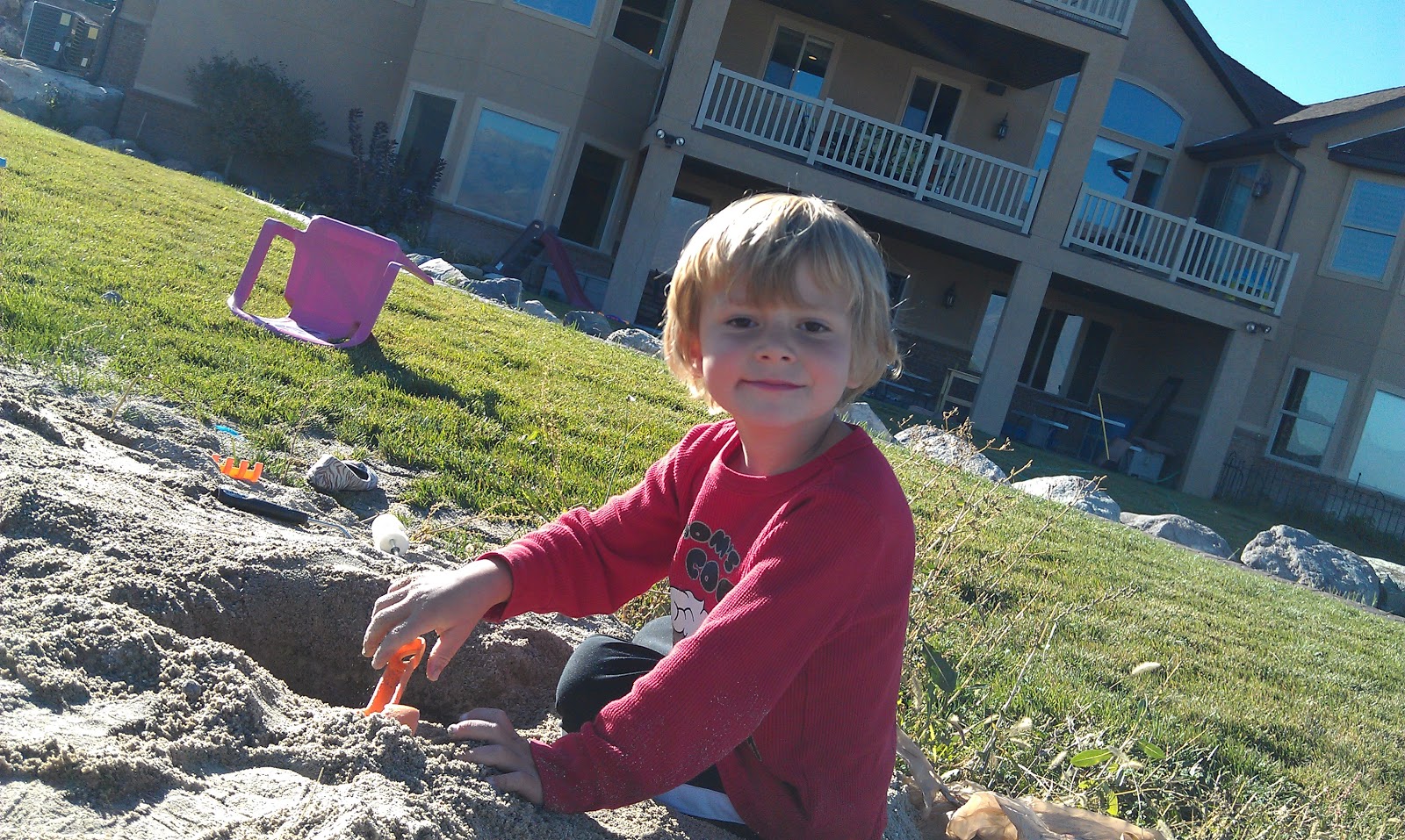 An older neighbor boy happened by with the intention of joining up with the video-game squad. Intrigued by what we were doing, he stayed and joined our castle-brigade. He and Keira took on the role of structural engineers and began digging tunnels intended to connect to the moat Christian and I were constructing. As you can see, we were feeling quite pleased with our success.