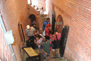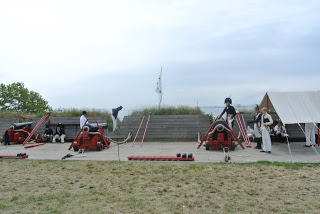 Bring your family east if you can, but if you can't search the web or visit your local library, or read my books and share this great history with a new generation. Fort McHenry's big "Sailabration" ended last week, and it was magnificnt to see the tall ships sailing along the harbor. McHenry's reenacters pounded a salute out with cannon-fire which was returned by many of the ships who carried their own cannons. But don't dismay. Despite budget cuts that have reduced some of this grand Baltimore fort's celebratory plans, there is sll plenty to see and do, particularly if you time your visit well. Copyright 2009 Laurie LC Lewis, (To obtain permission to copy or reprint any portion of this post, please contact the author at lclewis2007@gmail.com)