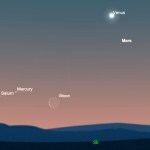 The post The moon meets up with Mercury and Saturn early Monday morning, , appeared first on NEWDAWN Blog.
