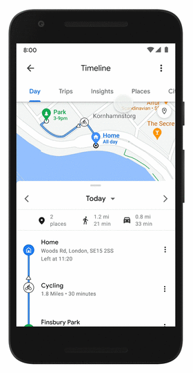 Google is also adding a couple of new features to Maps’ Timeline section on Android, which is accessible by tapping your profile image and then selecting “Your Timeline.” A new “Insights” tab shows trends about the amount of time and distance you’ve spent using different transport methods and the places you’ve visited. There’s also a “Trips” tab that gathers together places visited, including the option to export them as a list if you want to pass them on as travel recommendations.