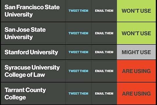 Many schools will resume in-person examinations this fall due to the wide availability of COVID-19 vaccines, but it seems that some plan to continue using eproctoring software in some capacity. Fight for the Future says it has asked a number of colleges about their plans and has stamped each one with labels for “Won’t Use,” “Might Use,” and “Are Using.” (Colleges that haven’t responded to Fight for the Future’s inquiries got a “Might Use.”) Viewers are prompted to tweet at and email each university to denounce the software’s use.