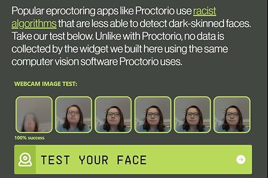 Also on the front page is a “webcam image test” meant to determine whether eproctoring algorithms could accurately identify a viewer’s face (following reports that such algorithms disproportionately fail to identify faces with darker skin tones). Fight for the Future says the test uses the same computer vision software used by prominent eproctoring platform Proctorio, but insists that it doesn’t collect any data from the widget.