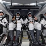 SpaceX’s Crew-1 astronauts, including NASA astronauts Shannon Walker, Victor Glover and Michael Hopkins and JAXA astronaut Soichi Noguchi, pose inside their Dragon capsule at SpaceX’s headquarters in Hawthorne, California, on July 30, 2020.(Image credit: NASA)