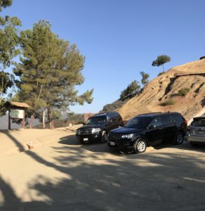 Thirteen days later on a Sunday morning, I’m up on the trail at dawn and see the black cars in the dirt parking lot again. This time one is half blocking the entrance, but I can squeeze past. Two more are backed into real parking places, but ready for a quick exit if needed. The fourth Ford Explorer is parked on the street and one female and two male agents are standing beside it. I let Angel and Rosie out of the car and say to the woman, “So Michelle is back, huh?” She smiles but says nothing.