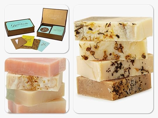 As a token of gratitude, I'm offering a giveaway of three amazing products:Year of Gratitude Kit, Vegan Tea Party Soap Box, Vegan Flower Soap Box from Uncommon Goods. I handpicked these three items as parfait for my readers and am excited to ship them your way. Who doesn't love {+ need} handmade soaps and snail mail thank yous? Consumables are truly to greatest gifts.