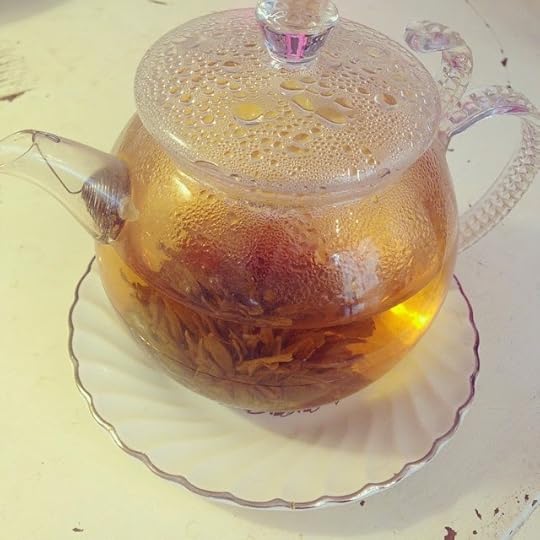 I inhale the scent, tiny delicate pieces of the tea floating above the cup.