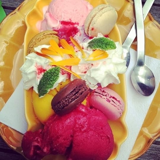 ice cream, macarons + edible flowers