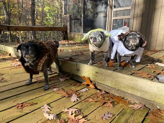 Tim had gotten the pups their Star Wars branded (seriously) pet costumes over the past few months plus a red (although it looks pink in the daylight) crystal for my saber to turn me into a Sith. Not sure what/who that is, but was informed I could wear all black to be one, so I was on board!