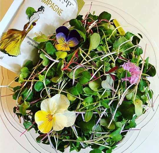 Picked up microgreens (shown above + flowers) during a farmers’ market jaunt