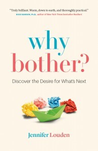 In this week’s edition of Tranquility du Jour, I chat with Jen Louden about her new book, Why Bother? Discover the Desire for What’s Next. Learn about her circuitous journey to writing this book, the two kinds of why bother, and her six stages to bothering.