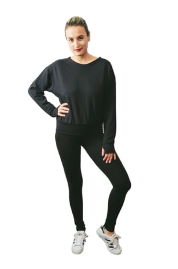 1. a fleece sweatshirt with thumbholes (see bottom pic). ADORABLE with the mini mesh skirt, too.