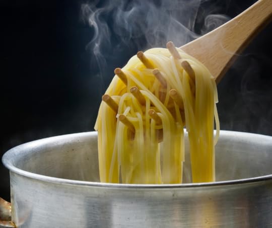 It’s important to salt your pasta water properly–it should taste like soup, not like sea water. Sea water, bad. Soup tastes good. Taste the water and adjust accordingly.