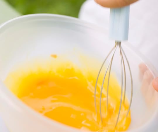 Gradually add the dry ingredients into the creamy egg mixture, gradually mixing it.