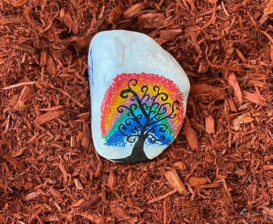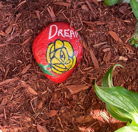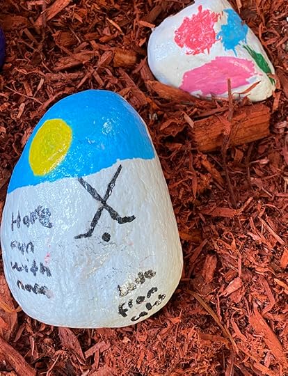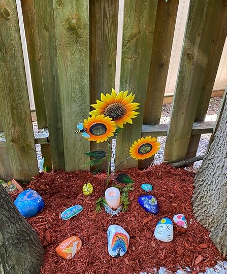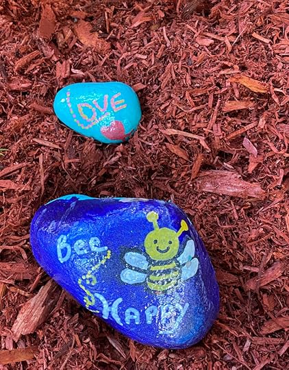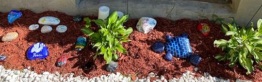 I spent all of June collecting, prepping, and painting the stones. Both of grandsons also lovingly painted a few stones for this love-filled project.