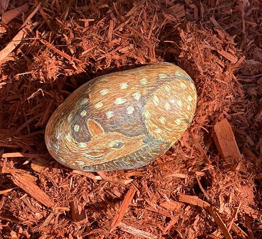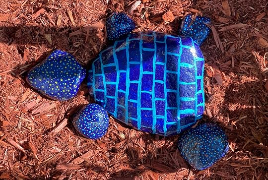 But, on the other hand, it was easy—even though I was up to my elbows in paint and there were quite a few do-overs. And it was easy because I relived a lot of our life together as portrayed through some of those memories through my rock painting.