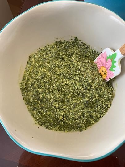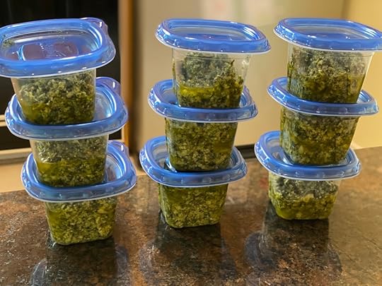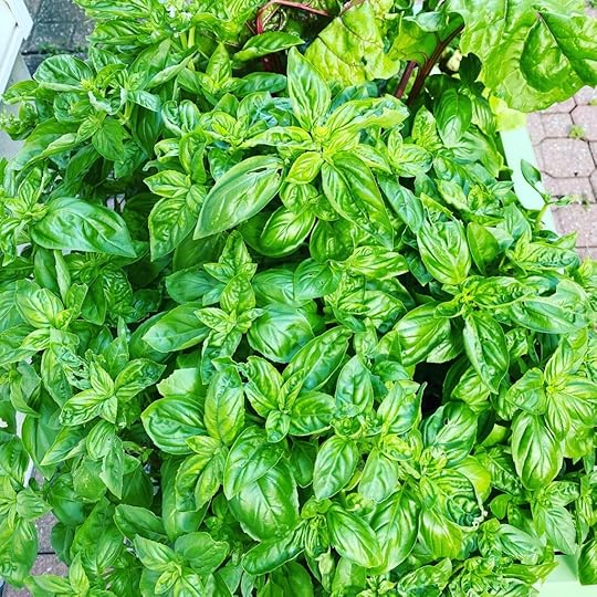 My garden basil.Besides using it to can tomatoes and make marinara sauce and add to salads, I made a few batches of basil pesto.