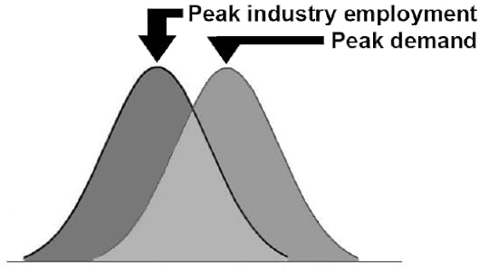 Prior to reaching peak demand for their goods or service, industries experience a period of peak employment.