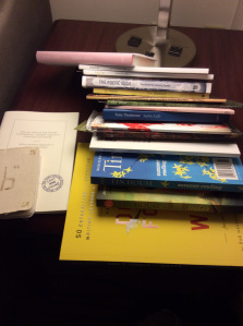 Myself and I realized that we hadn’t posted anything for a while, so we sat down at our disorganized desk today to ask and answer a few questions. The theme: personal taste, naming the books, movies, TV, and music we’ve actually been into lately, because the actual titles can tell no lies.
