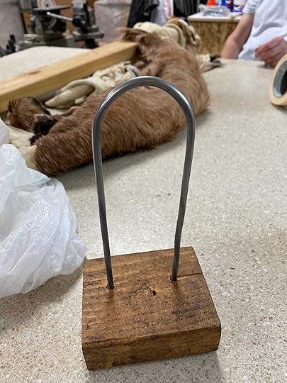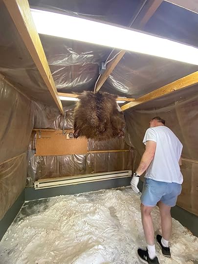 Hanging a hide before sending to tanneryOther WorkIt’s nearly impossible to cover everything that my mentor flooded me with in the short few weeks I was working with him. However, some of the things we did cover were home tanning (for my own furs), fixing up janky euro mounts and the finer points of beetles, more sewing, turkey mounts and cutting off spurs, and some of the artistic finish work. What I can say is that I am more prepared to go into this trapping season and come out the other side with better pelts, which is a massive win, but it has also fueled me with the desire to learn more about taxidermy and potentially go to a school!