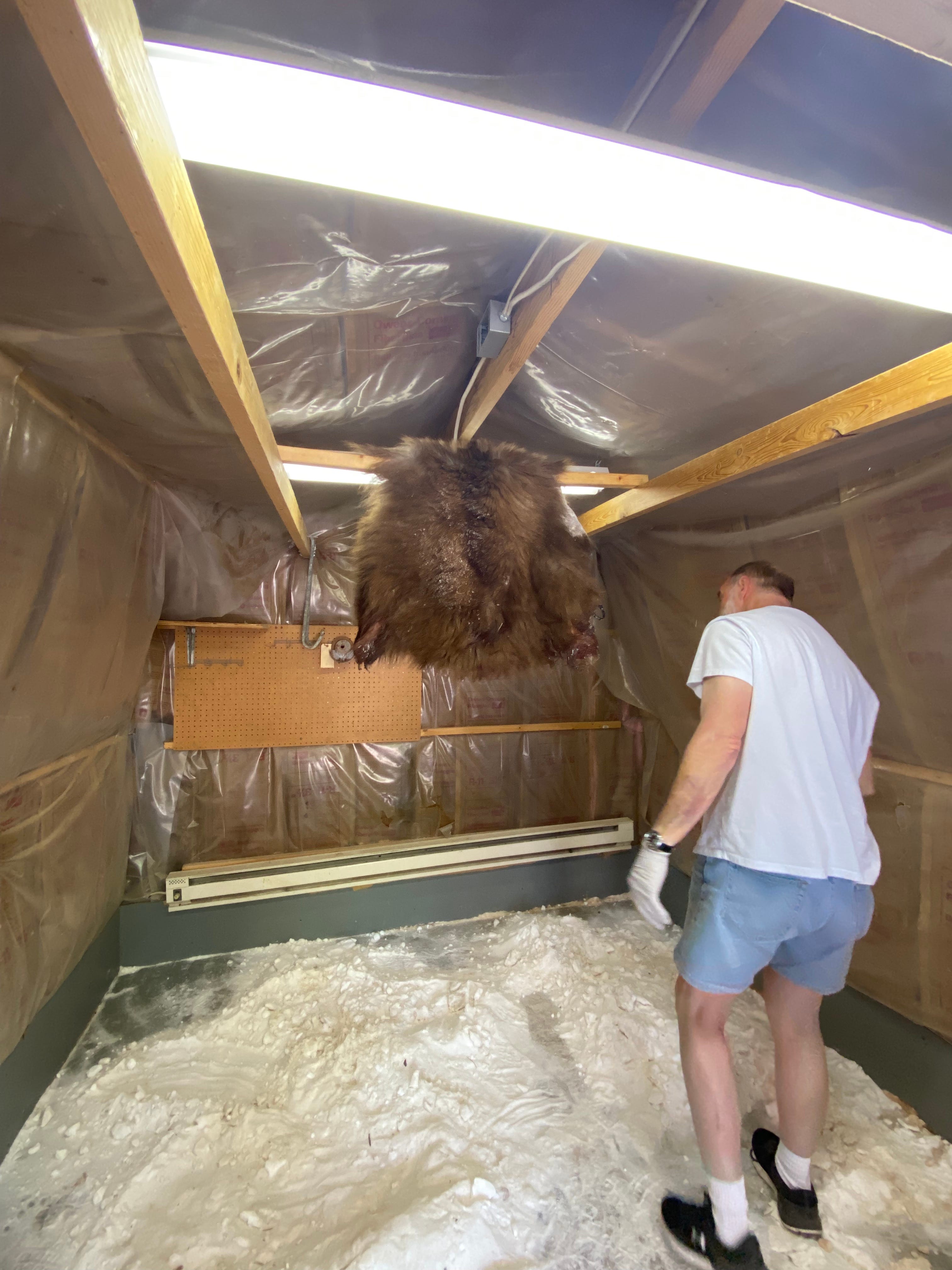 Though I have done this a few times before, the refinement and approach to cleaning hides that I learned while in a professional shop was top-notch. First and foremost we covered de-bugging/ticking the hide. Each hide that came in got a nice spray down with a bug killer that wouldn’t effect the fur and went straight into the freezer. After a day or two we would pull them out to thaw before getting to work.