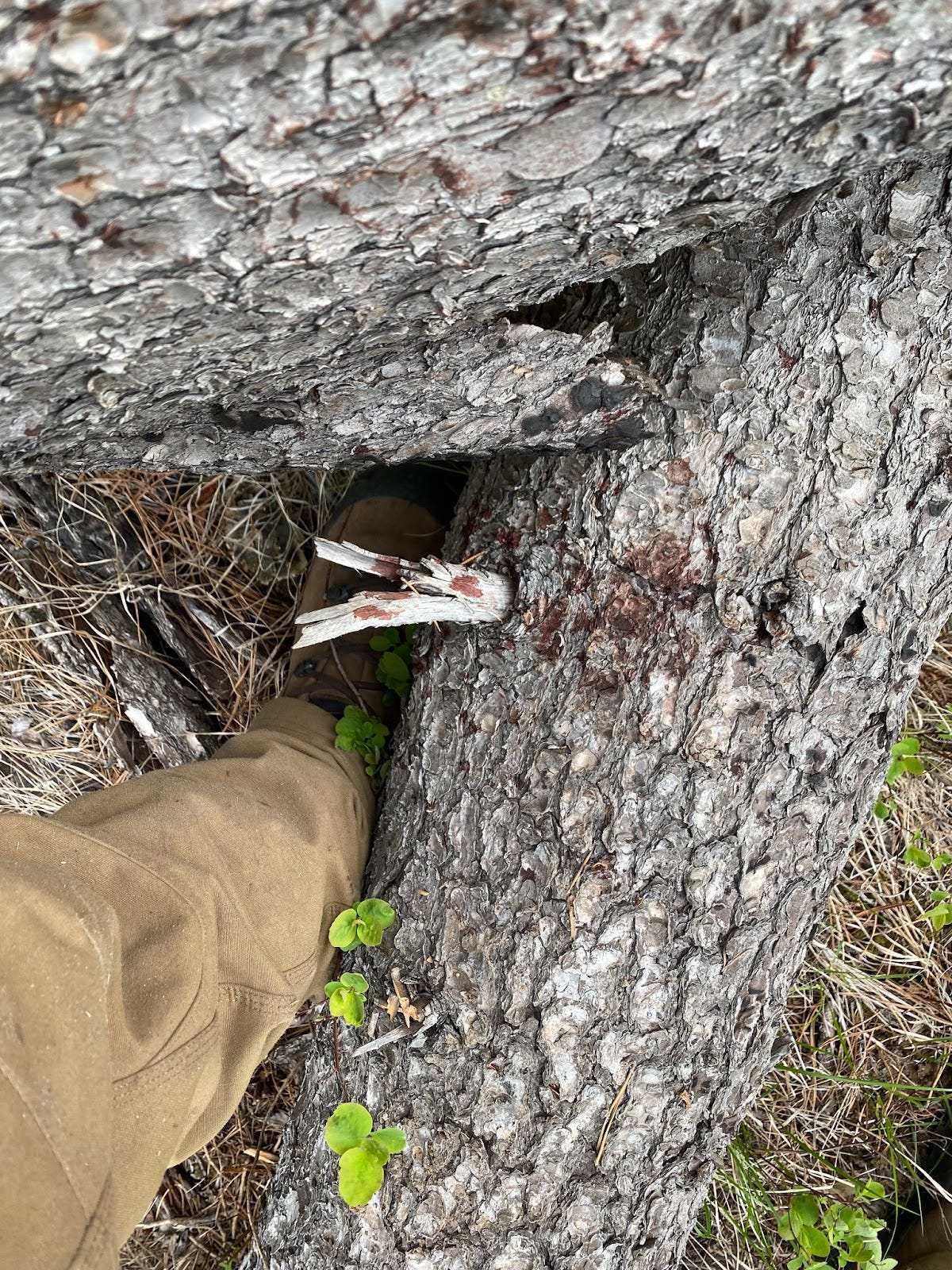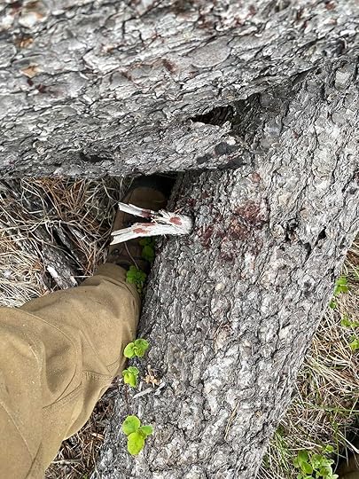 While Sam disappeared into the timber, Johnny Mack and I investigated the sprung trap to look for hair or any sign of what animal may have tripped it, but we were cut short by the beautiful sound of Sam’s ever-stoic voice, “Guys, you aren’t gonna believe this… I’ve got blood.”