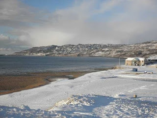 And the scenery is a bit like this...I used to live not far from Lyme Regis, so it's a town I know well, although I don't think I've ever seen it in the snow. However, living where I do now, in the rural wilds of North Yorkshire, I see a lot of snow, usually from the front.