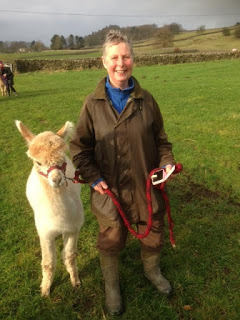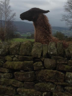 Anyway. Last year my lovely OH Steve (who doesn't get nearly enough credit for quietly enabling me) bought me a llama walk for Christmas, and this Wednesday was when I got to go. And everything conspired to make it the most wonderful day... the fog that had prevailed lifted, the temperature was a ridiculous (for North Yorkshire in December) 13 degrees, the sun shone...and there were llamas! (For reference, we went to Nidderdale Llamas, which I can thoroughly recommend), and we walked around the dales... with llamas! Although I had an alpaca, called Paddy, so not a llama, but basically the same only smaller and cuddlier and with more fur.