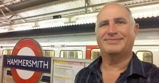 This is him. No, not the big red circle, that's the Underground symbol. He's standing next to it, and isn't the big long silver thing (that's a train).