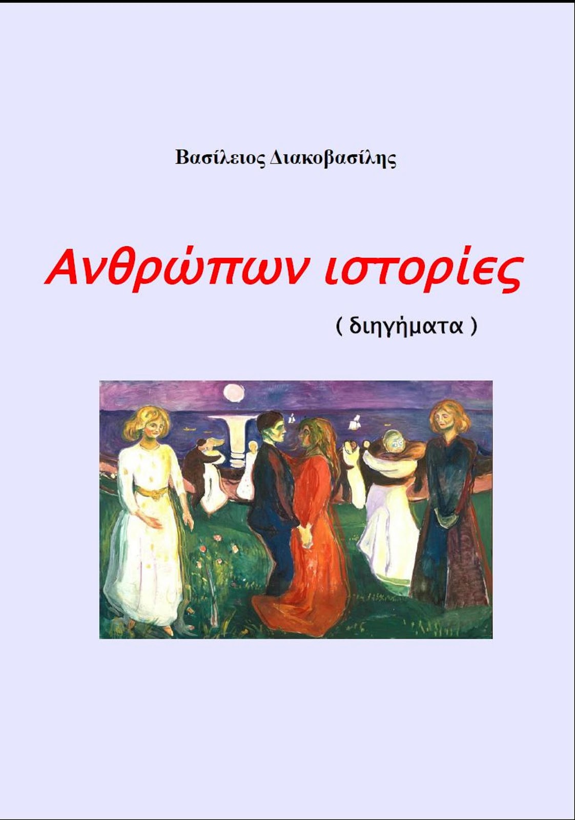 Αυτοέκδοση του Βασίλειου Διακοβασίλη, με την πρώτη απόπειρα του να μεταφέρει διηγήματα που γράφει εδώ και μερικά χρόνια, από τα ηλεκτρονικά μέσα δικτύωσης, σε έντυπη μορφή, σε βιβλίο. Ανθρώπων ιστορίες, ο τίτλος του.... ...Ιστορίες, απ΄ τη ζωή βγαλμένες ή φανταστικές, ποιος αλήθεια ξέρει; Ιστορίες, που όταν αρχίσεις να κτυπάς το πληκτρολόγιο, τα γράμματα ένα ένα, οι λέξεις και οι προτάσεις εμφανίζονται αβίαστα, οι ιστορίες κυλούν μπροστά σου, σαν ένα ποτάμι, που θα σταματήσει μόνο όταν θα φτάσει στον προορισμό του. Και τότε αφού ειπωθούν, η ψυχή γαληνεύει διότι την απάλυνες από το αβάσταχτο φορτίο με το οποίο η μνήμη την πλάκωνε. Ιστορίες για την αγάπη, για τον χωρισμό, για τη μοίρα των ανθρώπων, για τις καλές στιγμές ή τις δύσκολες αποφάσεις τους. Ιστορίες ανθρώπων....
