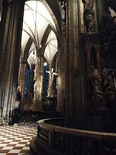 Η πρώτη μας στάση φυσικά ήταν η κεντρική πλατεία της πόλης, η Stephansplatz με τον επιβλητικό ναό του Αγίου Στεφάνου. Η ανοικοδόμηση του ξεκίνησε τον 12ο αιώνα και μέσα από συνεχείς προσθήκες και τροποποιήσεις πήρε τη σημερινή του μορφή. Εξωτερικά σε