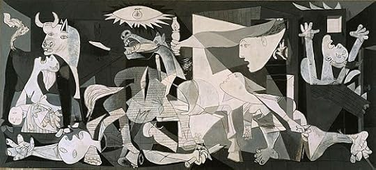 7) Ίσως το πιο γνωστό αντιπολεμικό έργο. Η Γκουέρνικα (ή Γκερνίκα στα ισπανικά) του Πάμπλο Πικάσο (1937). Το έργο το εμπνεύστηκε από τις πληροφορίες που ελάμβανε για τον Ισπανικό Εμφύλιο. Σε αυτόν τον πίνακα δεν υπάρχουν όπλα και εκρήξεις, αλλά αποδίδονται με την τραγικότητα που αρμόζει οι συνέπειες του πολέμου, στα ζωντανά όντα. Ένα διαμελισμένο άλογο και ταύρος, διαμελισμένα κορμιά και τέσσερις γυναίκες που ουρλιάζουν με τα νεκρά μωρά τους. Το έργο είναι ασπρόμαυρο, μετά από απόφαση του ίδιου του καλλιτέχνη, γεγονός που τον δικαίωσε απόλυτα.