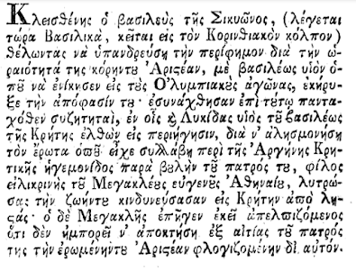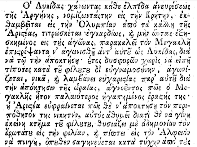 Εκ τούτον, ο δρόμος, η πάλη, ο Δίσκος και το Παγκράτιον, παίζονται μέχρι της σήμερον εις την Θεσσαλίας, και εις όλην την Ελλάδα.