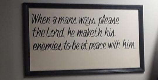 Scriptural signs hang from the wall at the Outreach to show lasting encouragement from the past when City Outreach was in place under the direction of Mark Bozzo. This one from Proverbs 16:7.“It’s significant. It fits the need of the people in the area (Male, 63).”