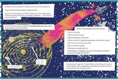 Again, Earth narrates: “Time is wasting. And my climate is getting worse … And a lot of your human activities are messing with my water, which, as you know, is 71% of my surface.”