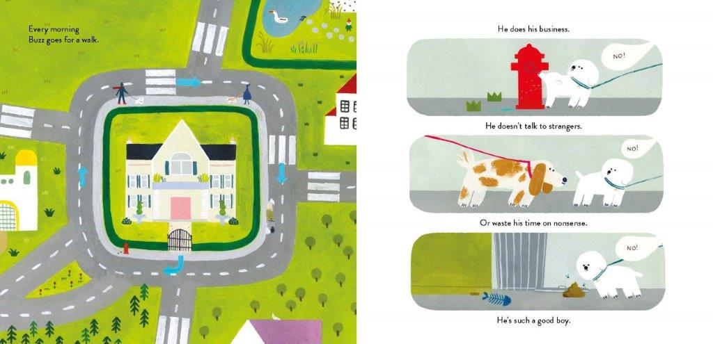 Buzz has a good life. He lives in a fancy house, eats nutritious food, and is pampered well cared for. He takes his people for walks every day, and on Sundays he gets to go to the dog park! As long as he stays on a leash… because those other dogs could be mean or scary. And then one day, Buzz finds the right door open and he’s free!