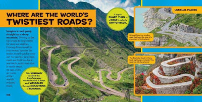 Where is the Longest River? (Is it the Nile or the Amazon?)Where does the loudest insect live? (with instructions for how to make your own loud insect noise)Where was pizza invented? (with a list of interesting toppings from around the world)Where are the twistiest roads?
