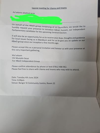 Very little of Adnan Hussain’s vote came from the “white” areas. I personally witnessed the counting of one ward in the south of the constituency where he only got 2 votes, but I got 120 in a ward normally entirely Labour. In fact my ability to take “white” socialist or protest votes from Labour allowed Adnan Hussain in.