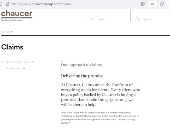 By this time I had read very carefully through my policy document, and while it had a big Arkel letterhead at the top, in the detail it gave the name of the actual insurer as the Chaucer Insurance Company.