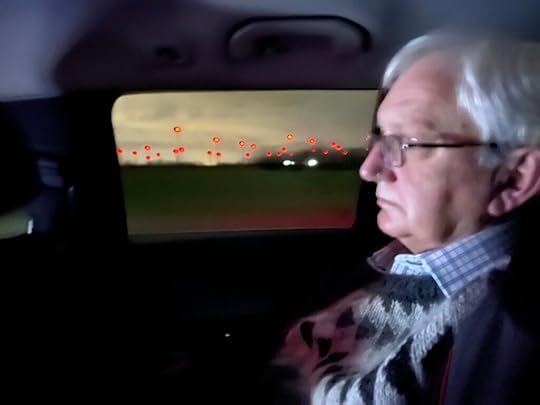 At first I thought we were amongst the airport landing lights, but there were too many of them, and they were the wrong colour – all the same deep red – and far too widespread. As the car sped along and parallax took effect, I realised that, although on all sides, they were further away, and thus much larger, than I had realised.