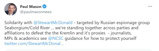 I want to reassure Mr McDonald that his hysterical ranting about being hacked by a state intelligence service, when he appears by his own account to have fallen for a phishing scam the average 12 year old would see through, is hilariously wide of the mark.