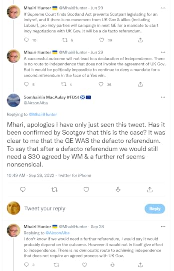 The SNP brief and Claire Mitchell KC are not using the same arguments and even the same sources that I used because they are following me, or because I am especially brilliant. The fact is that any experienced diplomat and any public international lawyer would know exactly the law, arguments and cases which apply. What Claire Mitchell has produced for the SNP is precisely what any decent lawyer or any good diplomat would produce to support the case for Scotland’s self-determination.