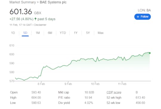 The German chancellor has already announced $200 billion of extra defence spending. The market expects to see similar boosts, totalling trillions of dollars across NATO, of money into the arms manufacturers and dealers, as a result of the Russian invasion of Ukraine.